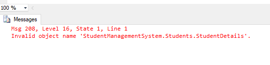 Now the table is dropped, and if we run the SELECT statement for the above table, we will get an error as,