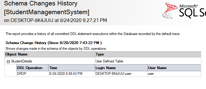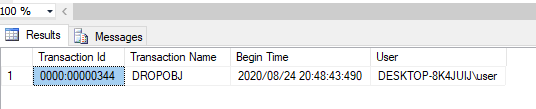 When we run the above statements in the respective Database, it will list the results of users and the tables dropped. The result column Transaction SID holds the user name.