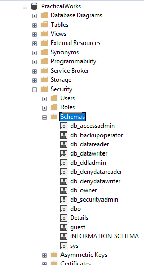 When we run the above T-SQL Statement in Query window, a new schema will be created and we can view that by using any of the methods mentioned in the previous section.