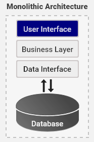 Monolithic architectures are a setup used for traditional server side systems. The entire systems function is based on a single application. For better understanding please see the architecture (Fig 1) .