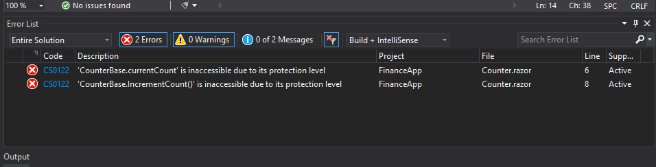 • Let’s change all the Private access modifiers to Protected access modifiers. Once we build the application, we will have successful build and run the application.