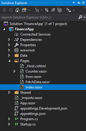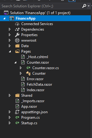 So, in the Pages folder, let’s create a new class as Counter.razor.cs file.