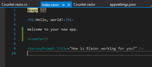 • The HTML part in the component remains in the same .razor file. Example, the HTML code in the Counter.razor will remain in the same component.