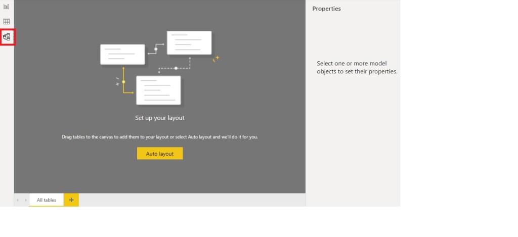 The third icon in the left side of the screen is Model. Models are used to create relationships between our data.