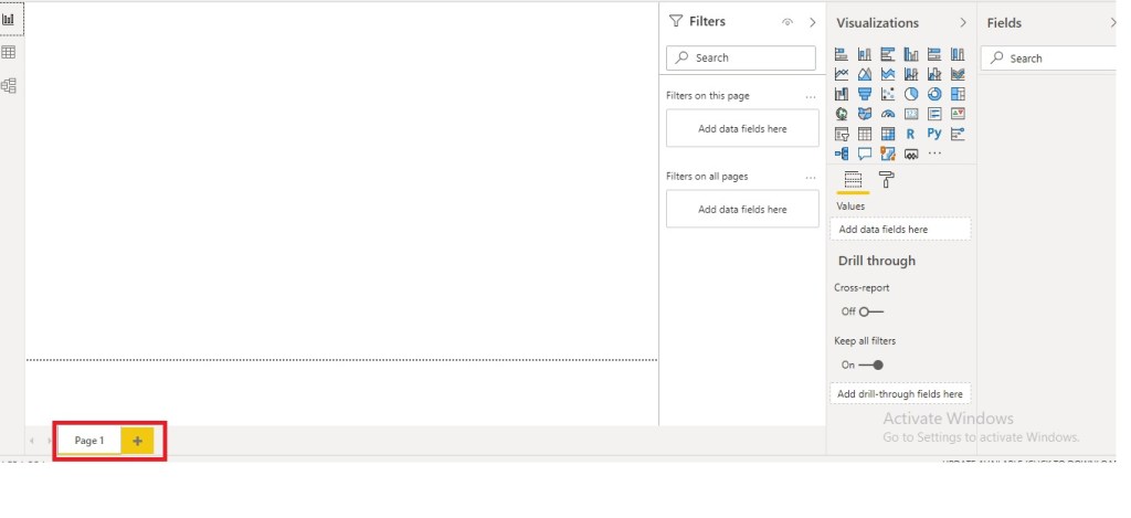 As like Excel Worksheet, we can add more pages and name each pages in the Power BI. To add or name the pages, on the bottom we can see Page 1 (by default) as shown below.