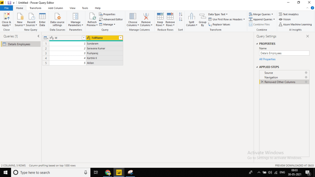 What is Query Editor is the first thing that strikes in our mind. It’s simple, A Query editor acts as an intermediate data container where we can modify our data by selecting the rows and columns and doing necessary changes. But remember the changes that we make in the Query Editor does not reflect into the original dataset until we apply the changes.