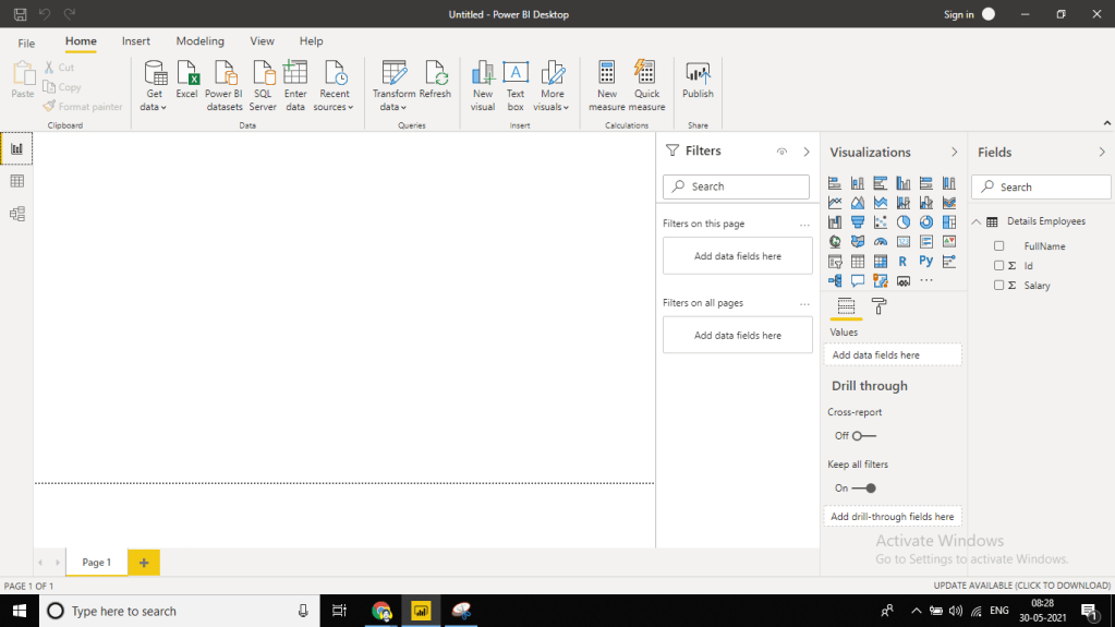 Now, lets connect our Power BI with our data source SQL Server.