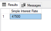 SELECT Details.CalculateSimpleInterest(100000,9.5,5) AS [Simple Interest Rate]