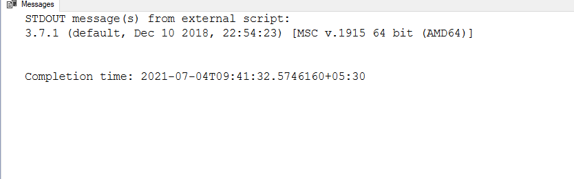 To get the Python package version, we have to import the sys. The below T-SQL statement shows how to get the version of Python,